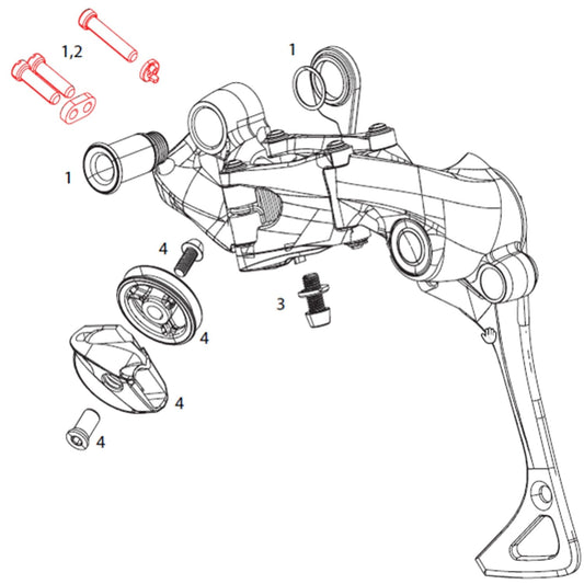 SRAM X01 1x11v / X01 DH 7V takavaihtajan työntö- ja kartioruuvit