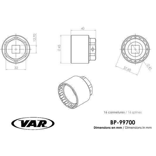 VAR DV-11900 räikkäavainlaukku (42 kpl)