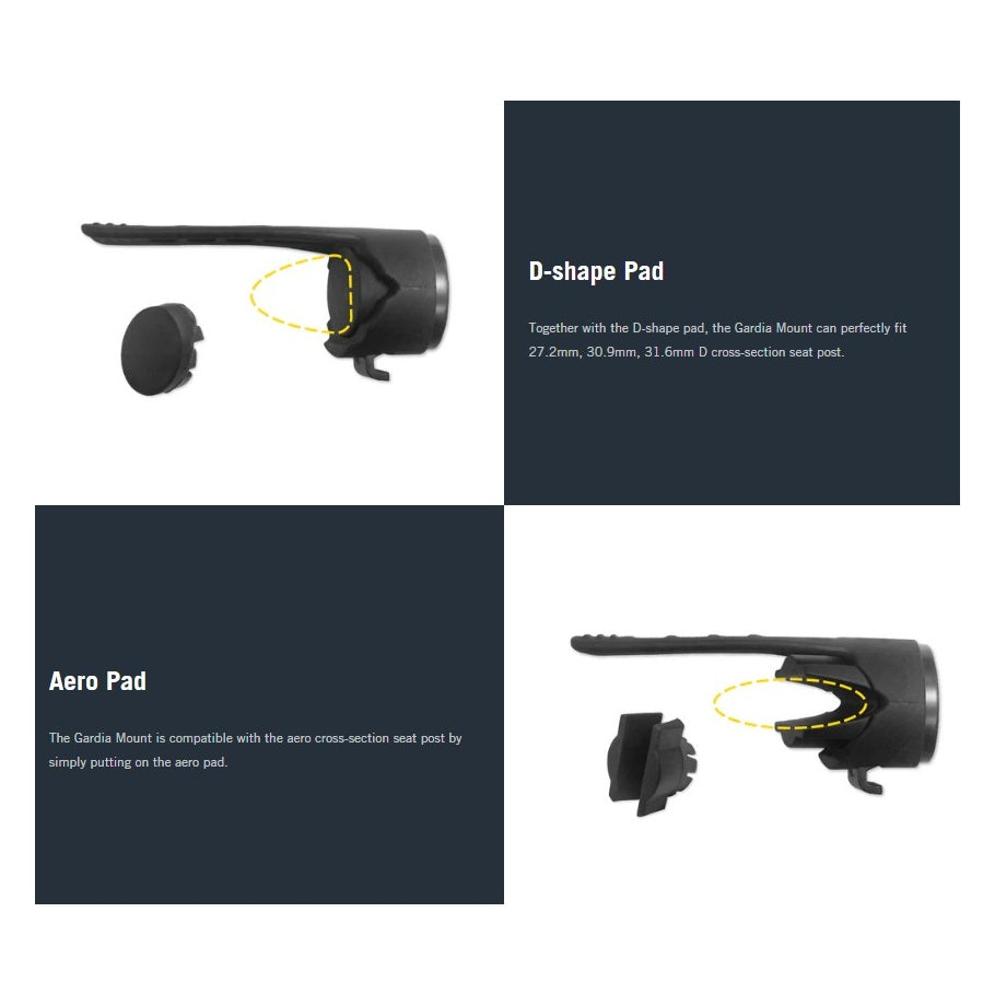 Pyörille, joissa on aerodynaamiset istuintolpat, toimitetaan erityinen tyyny, joka takaa täydellisen yhteensopivuuden.