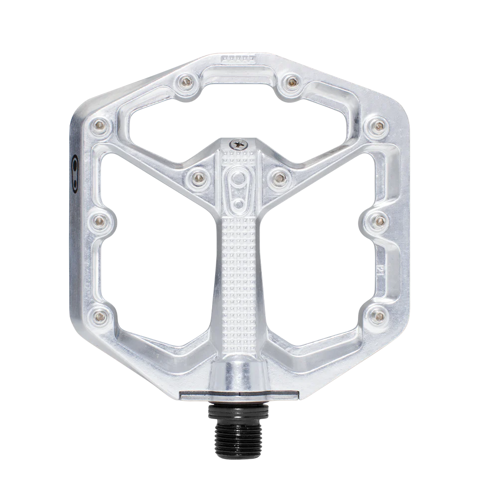 Jalusta on valmistettu vahvasta, kevyestä taotusta alumiinista, ja laakerit ovat neulalaakereita kestävyyden lisäämiseksi. Tässä Small-versiossa on 100 x 100 mm:n alusta, joka sopii ihanteellisesti kokojen 37-43 (eurooppalaiset koot) ajajille.