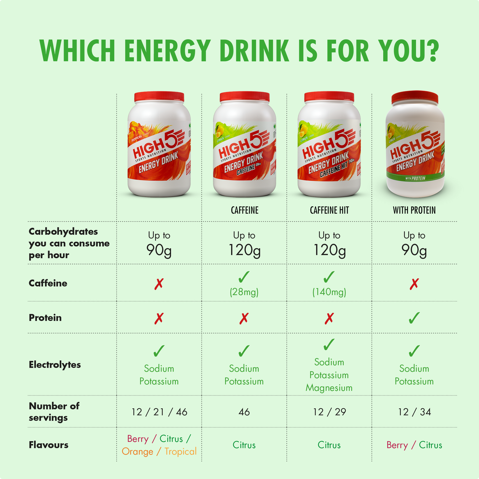 Rikastettu elektrolyytteillä, se auttaa myös estämään nestehukkaa ja tukee lihastoimintojasi ja kestävyyttäsi. High5 TA Energy Drink -juoman avulla et tunne oloasi "tyhjäksi", ja suoritat parhaalla mahdollisella tavalla koko ponnistuksesi ajan, kilometri kilometrin jälkeen.