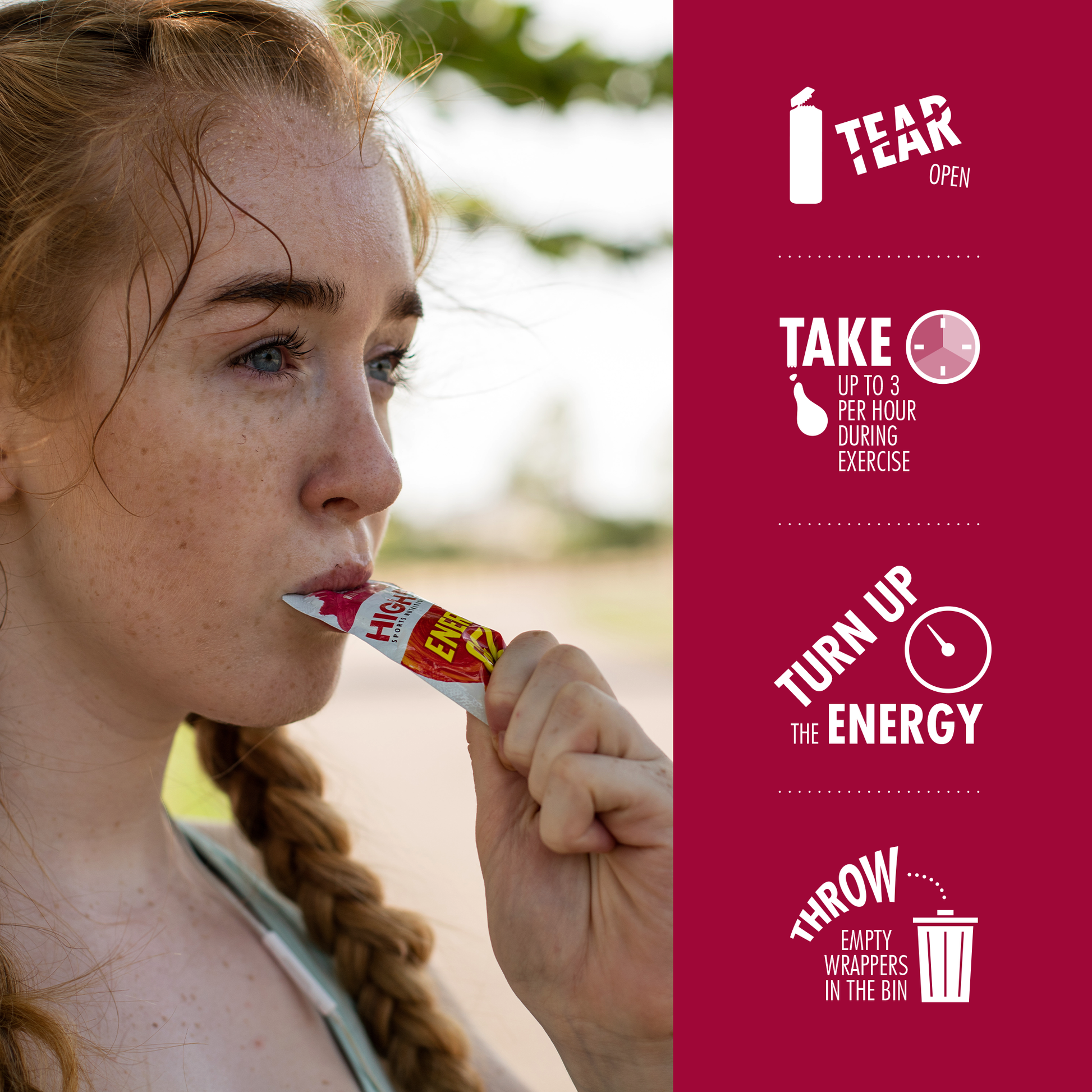 Saatavana vadelman tai trooppisen makuisina, ja siinä yhdistyvät miellyttävä maku ja tehokkuus. Bonus: mukana on ilmainen kierrätysohjelma, jonka avulla voit palauttaa käytetyt pakkauksesi. Täydellinen, käytännöllinen ja vastuullinen energiaratkaisu, jotta et koskaan "törmää seinään"!