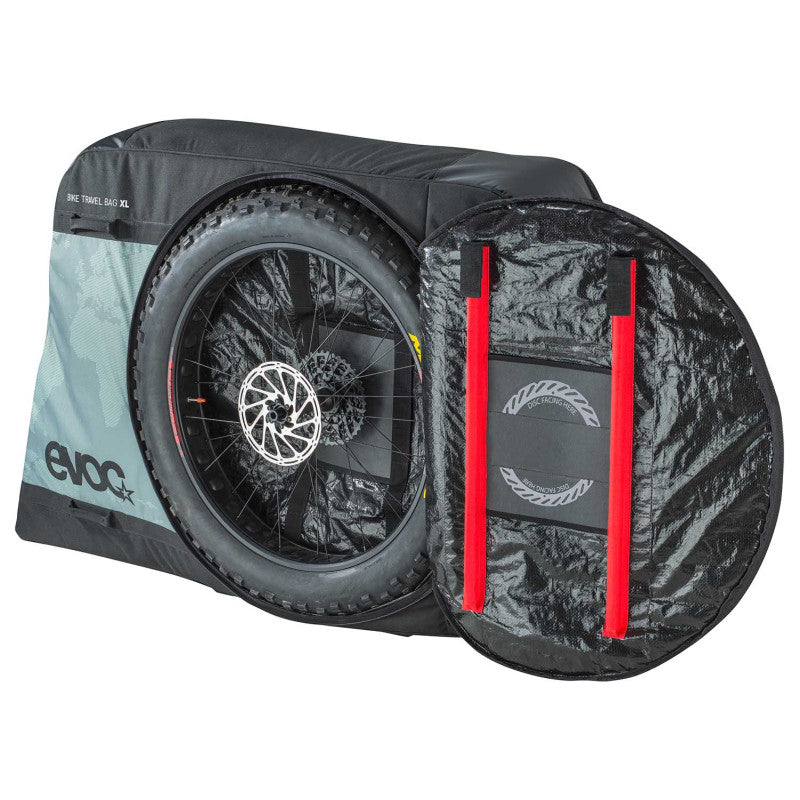 La EVOC BIKE TRAVEL BAG XL kantolaukku on erityisesti suunniteltu niin, että siihen mahtuu mukavasti Plus Size- ja Fat Bikes -pyörät. Se on kevyt ja tilava, ja se tarjoaa optimaalisen tilan turvalliseen ja helppoon kuljetukseen suurempiin kokoihin mukautettujen pyörälokeroiden ansiosta. Sen muuttuva kiinnitysjärjestelmä (V.A.F.F.F.E.) varmistaa, että runko pysyy tukevasti paikallaan koko matkan ajan.