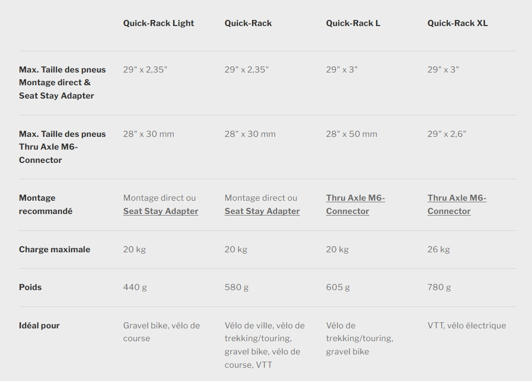 Quick-Rack Light on ihanteellinen, jos tarvitset vain sivupakkauksia ja haluat pitää painon mahdollisimman alhaisena.