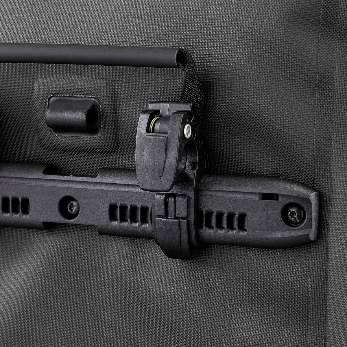 QL2.1 -kiinnitysjärjestelmä on entistäkin helpompi ja luotettavampi käyttää kuin edeltäjänsä, ja sen naarmuuntumisenestojärjestelmä estää rinkkoja hankautumasta tavaratelineeseen. Vaihtaminen pyörälaukusta reppuun on lastenleikkiä.