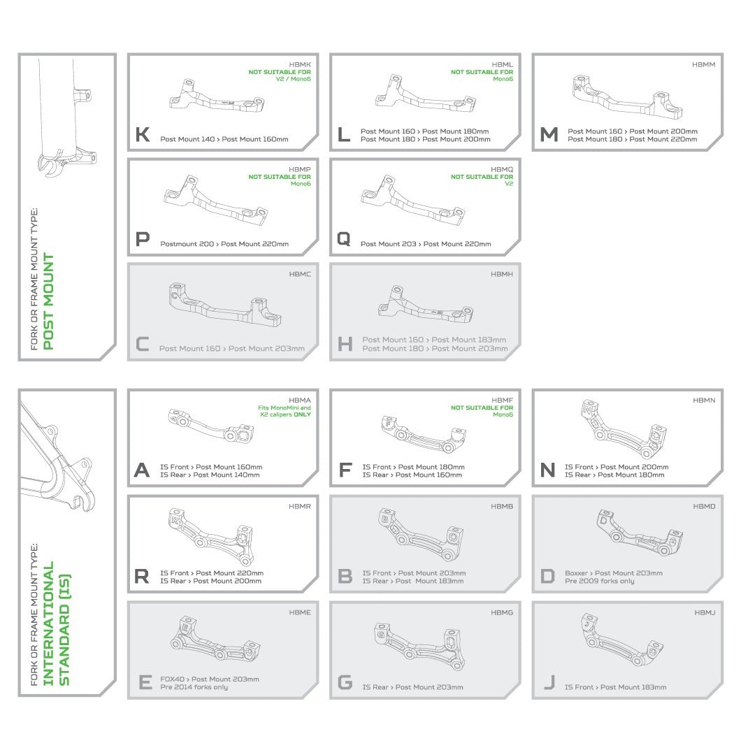 L' PM/PM HOPE -satulan sovitin on osa, jonka avulla voit vaihtaa 203 mm:n levykiinnikkeen 220 mm:n levykiinnikkeeseen haarukassa tai rungossa, jossa on vakiomallinen Postmount-kiinnike...