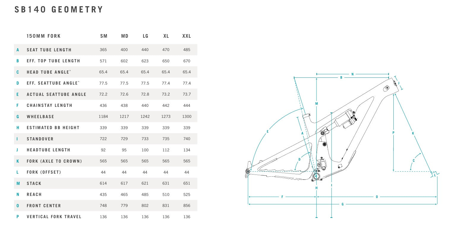Varustettuna Switch Infinity -jousitusjärjestelmällä, jousitusjärjestelmän ansiosta tässä pyörässä on räätälöity anti-squat-käyrä ja optimoitu 14 %:n jousitussuhde, minkä ansiosta se mukautuu täydellisesti kaikkiin tilanteisiin. Sen ainutlaatuinen geometria, joka on saanut inspiraationsa edeltäjänsä SB130:n esikuvasta, on suunniteltu uudelleen, jotta se tarjoaa enemmän kapasiteettia vaihtelevassa maastossa. Runko ja keinuvipu, jotka ovat sekä tyylikkäät että nerokkaat, integroivat tehokkaasti jousitusjärjestelmän ja lisäävät samalla maavaraa ja yleistä jäykkyyttä.