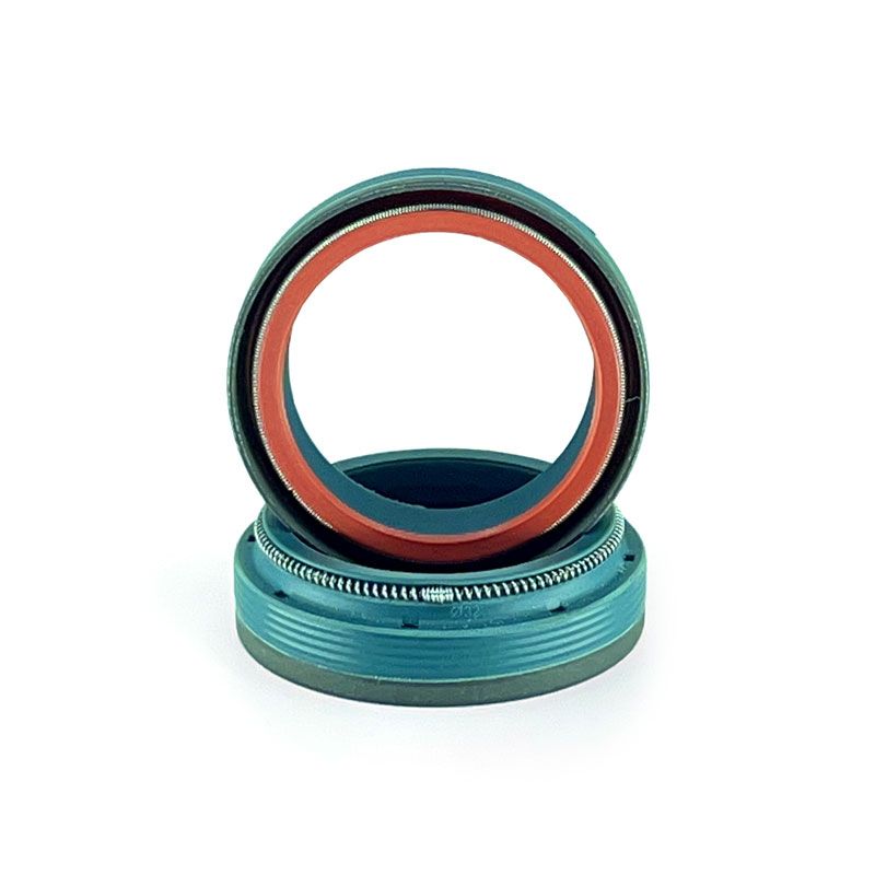 Dual SKF -tekniikka ja sen kaksoismateriaalitiivisteet mahdollistavat erittäin alhaisen kitkan toiminnan, mikä parantaa jousituksen herkkyyttä ja takaa samalla erinomaisen kestävyyden. Vihreä osa suojaa tehokkaasti likaa ja pesua vastaan, kun taas matalakitkaisesta materiaalista valmistettu punainen osa optimoi suorituskyvyn.
