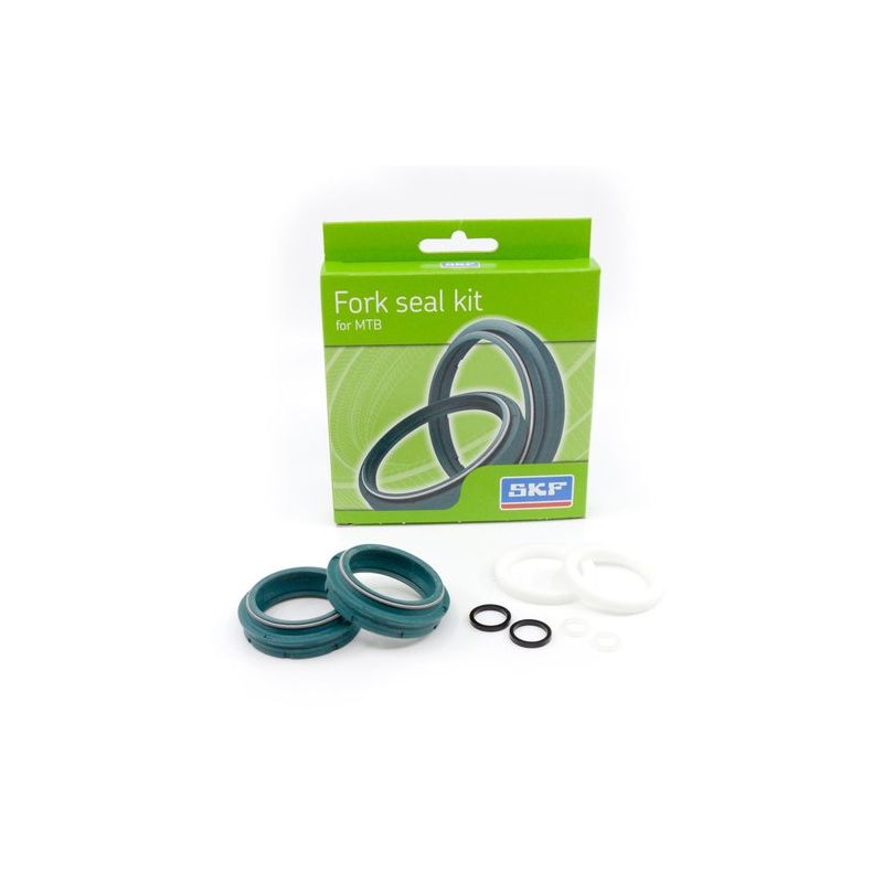 The SKF Low Friction DUAL -haarukan tiivistesarja maastopyörille. on suunniteltu erityisesti varmistamaan optimaalinen tiivistys ja pidentämään jousituksen käyttöikää. Se sisältää kaksi öljytiivistettä integroidulla pyyhkimellä, kaksi tiivistysaluslevyä ja kaksi esikäsiteltyä vaahtomuovirengasta.