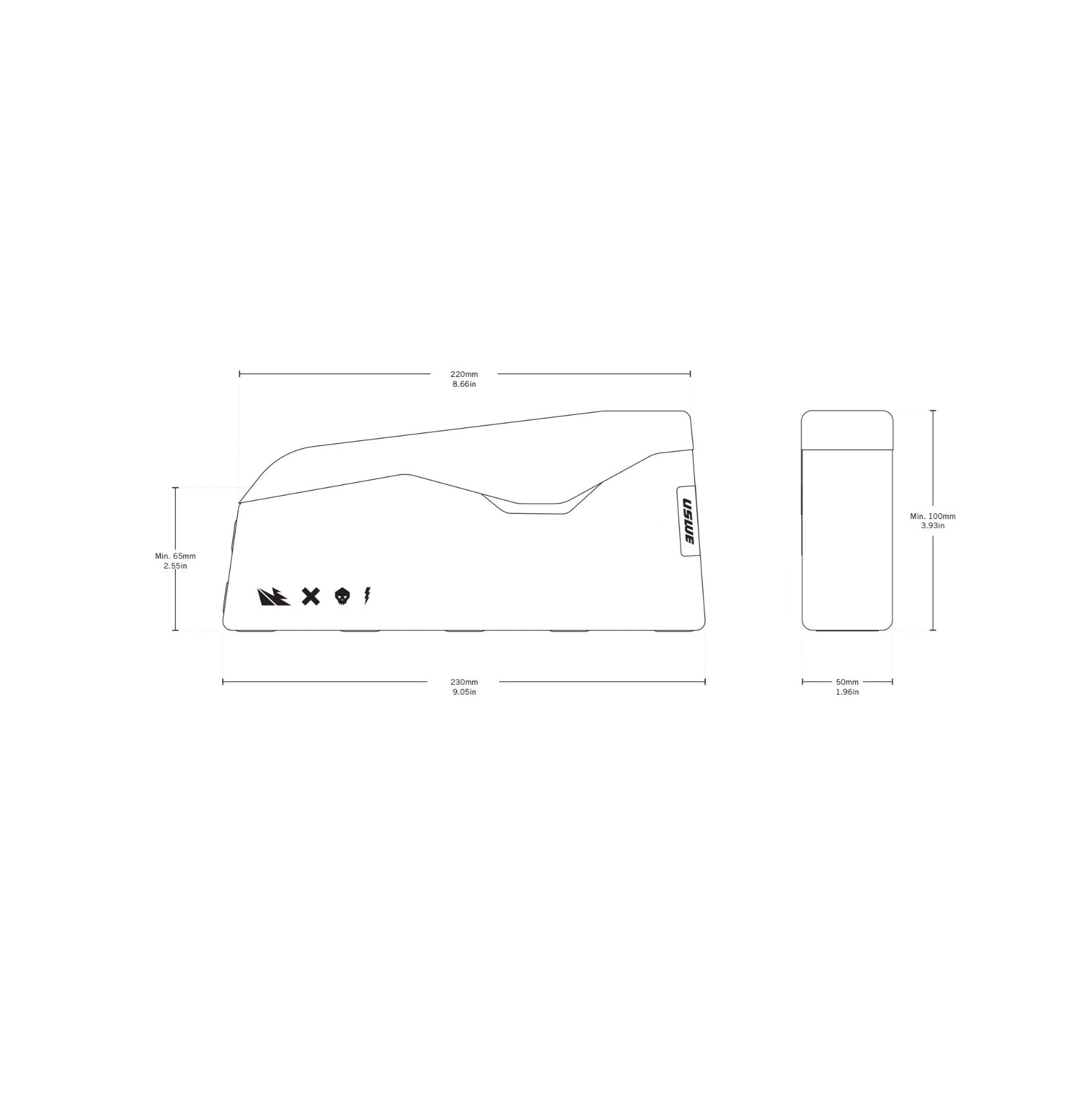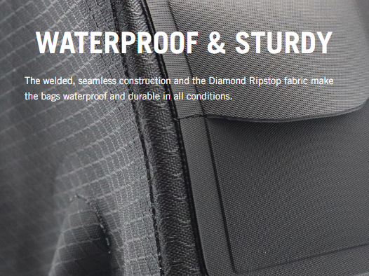 Valmistettu vedenpitävästä kankaasta jossa on saumaton hitsattu rakenneTämä takaa kestävyyden ja suojan elementtejä vastaan. Laukun etuosa, joka on valmistettu HypalonHypalonista valmistetun laukun etuosassa on latauskaapelin portti, joka sopii täydellisesti pitkille, yhteyksiin kytketyille matkoille. Läpän sisäpuolella odottaa inspiroiva viesti, jonka voit lukea pyöräillessäsi.