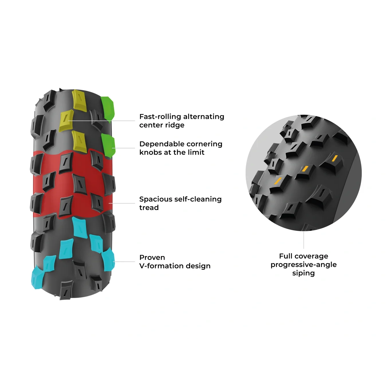 Motocrossin innoittamana sivukorvakkeet purevat tehokkaasti mutkissa, kun taas reilut välit ja täysi uritus takaavat erinomaisen pidon ja jatkuvan itsepuhdistumisen. Race Graphene + Silica -formulaationsa ansiosta Barzo yhdistää poikkeuksellisen pidon, kestävyyden ja alhaisen vierintävastuksen.